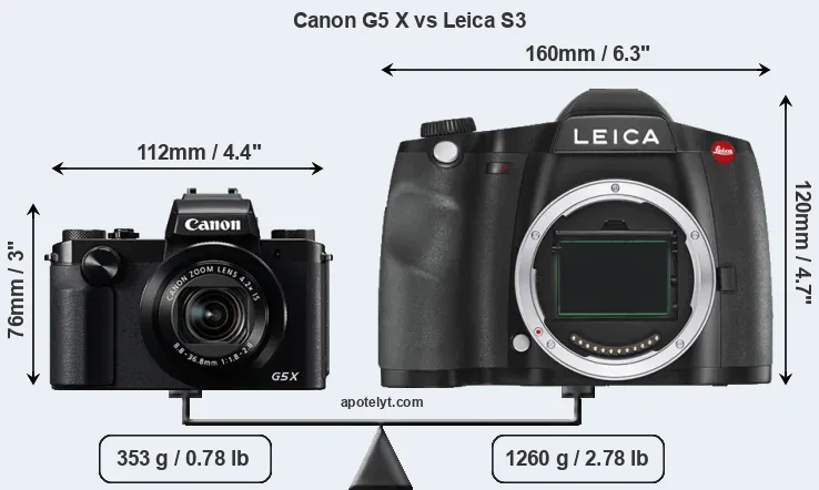Size Canon G5 X vs Leica S3
