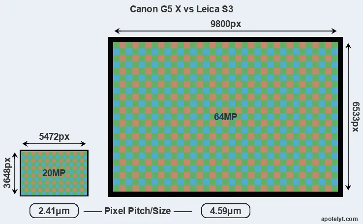 Canon G5 X and Leica S3 sensor measures