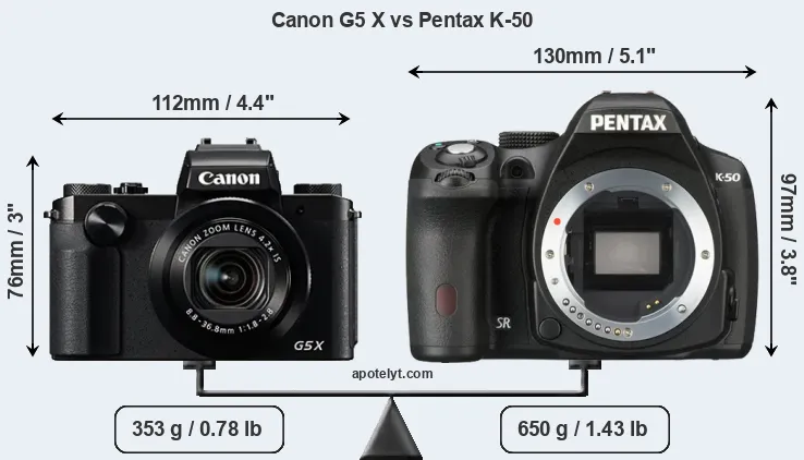 | Body Specs | Canon G5 X | Pentax K-50 |