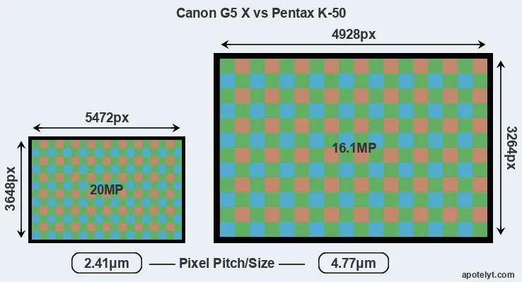 | Sensor Specs | Canon G5 X | Pentax K-50 |