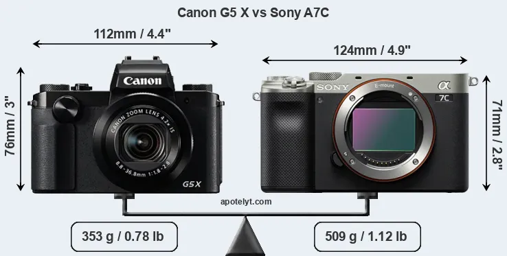 Size Canon G5 X vs Sony A7C