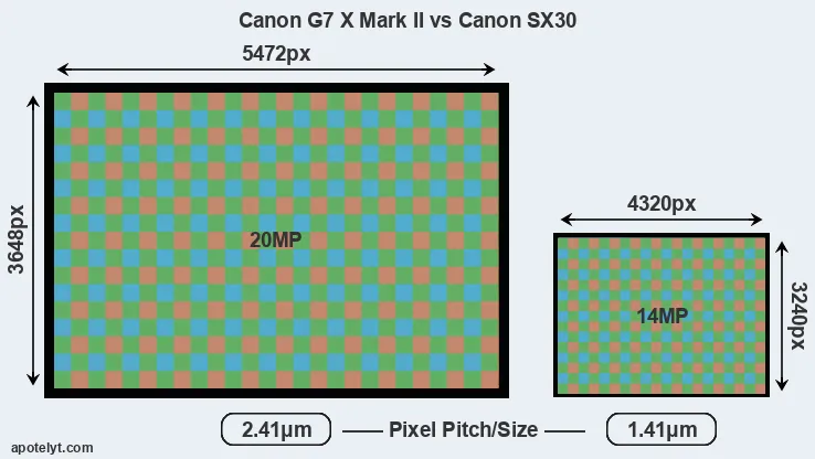 | Sensor Specs | Canon G7 X Mark II | Canon SX30 |