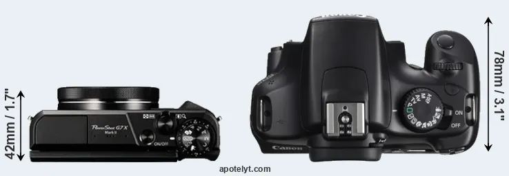 The Canon PowerShot G7 X Mark II and the Canon EOS Rebel T3 (labelled Canon 1100D in some countries) are two digital cameras that were revealed to the public, respectively, in February 2016 and February 2011. The G7X Mark II is a fixed lens compact, while the T3 is a DSLR. The cameras are based on an one-inch (G7X Mark II) and an APS-C (T3) sensor. The G7X Mark II has a resolution of 20 megapixels, whereas the T3 provides 12.2 MP.