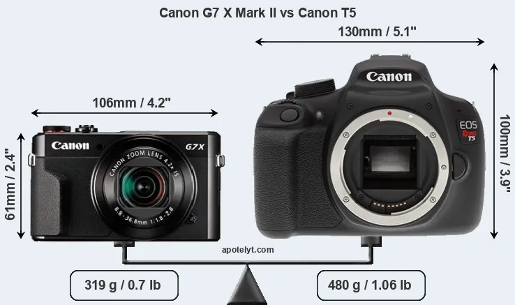 | Body Specs | Canon G7 X Mark II | Canon T5 |