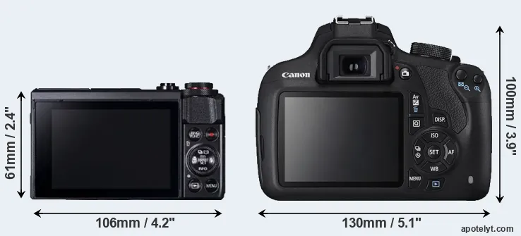 Specifications: Canon G7 X Mark II vs Canon T5