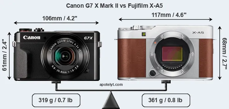 | Body Specs | Canon G7 X Mark II | Fujifilm X-A5 |