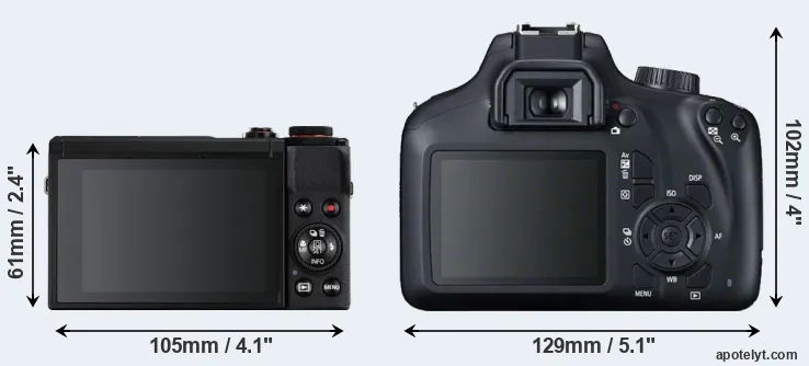 Size Canon G7 X Mark III vs Canon T100