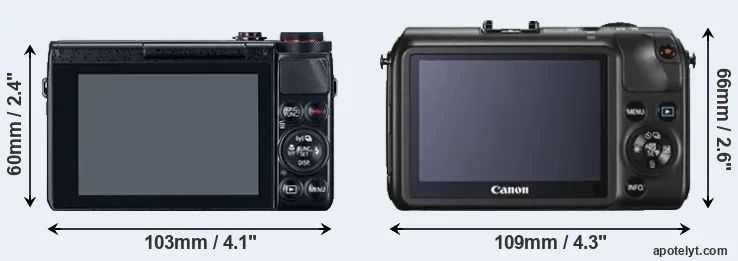 The above size and weight comparisons are to some extent incomplete and possibly misleading, as the G7X has a lens built in, whereas the Canon M is an interchangeable lens camera that requires a separate lens. Attaching the latter will add extra weight and bulk to the setup.