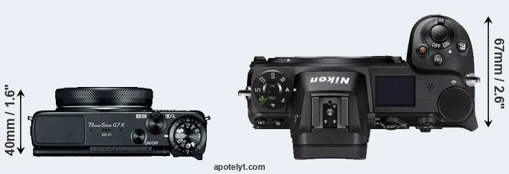 The above size and weight comparisons are to some extent incomplete and possibly misleading, as the G7X has a lens built in, whereas the Z7 is an interchangeable lens camera that requires a separate lens. Attaching the latter will add extra weight and bulk to the setup.