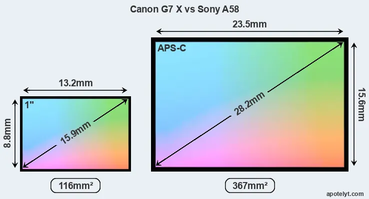 | Sensor Specs | Canon G7 X | Sony A58 |