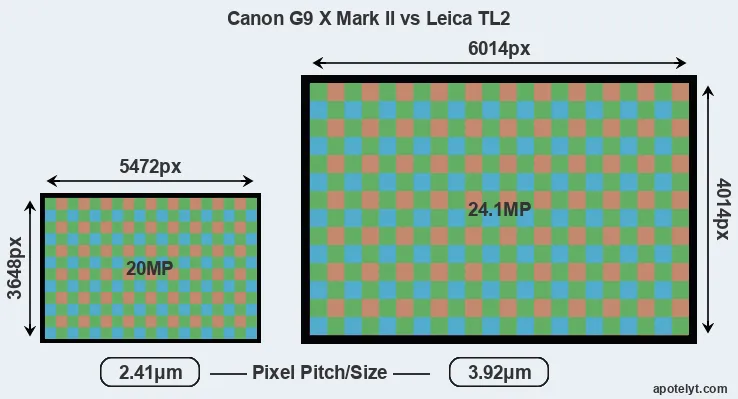 | Sensor Specs | Canon G9 X Mark II | Leica TL2 |