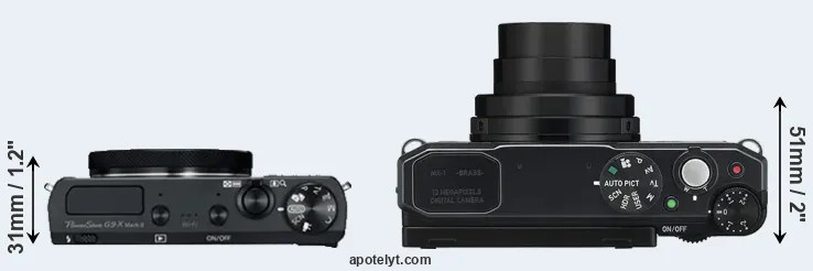 | 6. | Canon G9 X | 98 mm | 58 mm | 31 mm | 209 g | 220 | n | Oct 2015 | US$ 529 | ebay.com | |