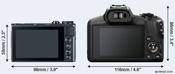 The above size and weight comparisons are to some extent incomplete and possibly misleading, as the G9X has a lens built in, whereas the R100 is an interchangeable lens camera that requires a separate lens. Attaching the latter will add extra weight and bulk to the setup.