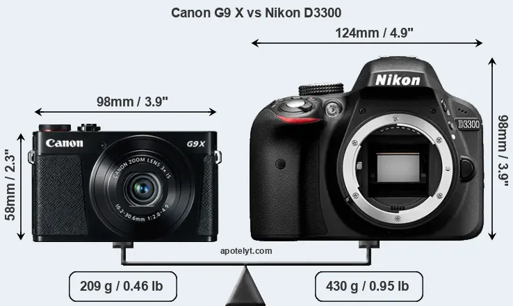 | Body Specs | Canon G9 X | Nikon D3300 |