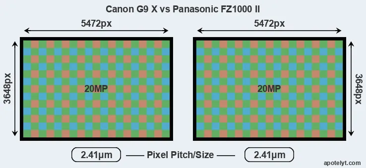 | Sensor Specs | Canon G9 X | Panasonic FZ1000 II |