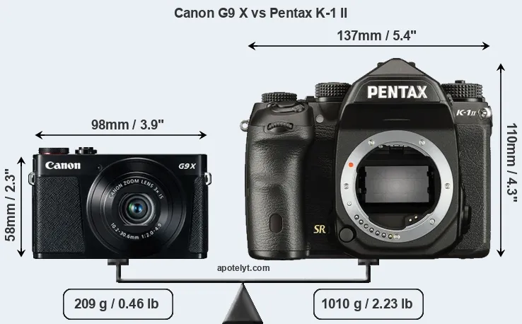 | Body Specs | Canon G9 X | Pentax K-1 II |