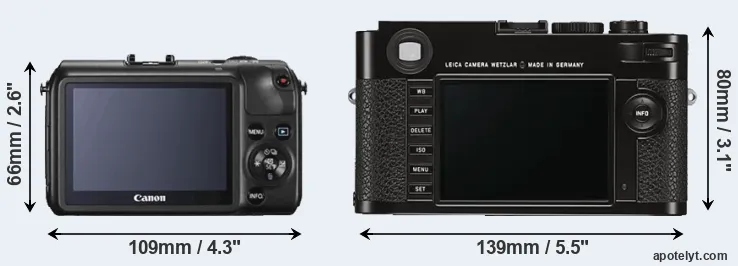 Going beyond this snapshot of core features and characteristics, what are the differences between the Canon EOS M and the Leica M (Typ 262)? Which one should you buy? Read on to find out how these two cameras compare with respect to their body size, their imaging sensors, their shooting features, their input-output connections, and their reception by expert reviewers.