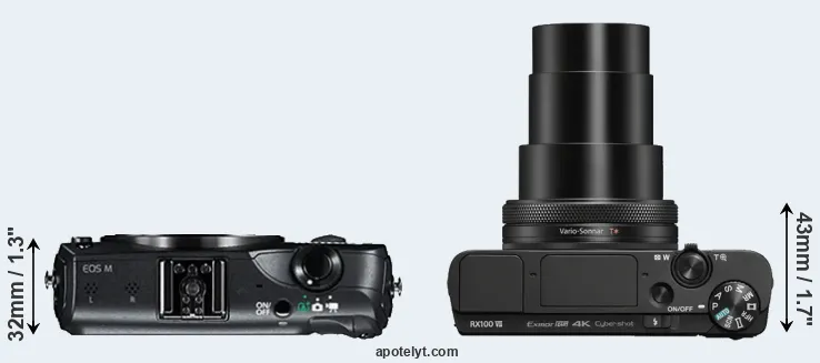 Going beyond this snapshot of core features and characteristics, what are the differences between the Canon EOS M and the Sony Cyber-shot DSC-RX100 VII? Which one should you buy? Read on to find out how these two cameras compare with respect to their body size, their imaging sensors, their shooting features, their input-output connections, and their reception by expert reviewers.