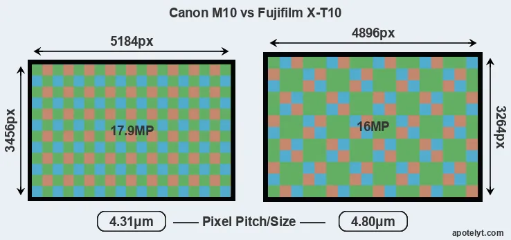 | Sensor Specs | Canon M10 | Fujifilm X-T10 |