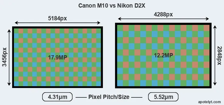 | Sensor Specs | Canon M10 | Nikon D2X |