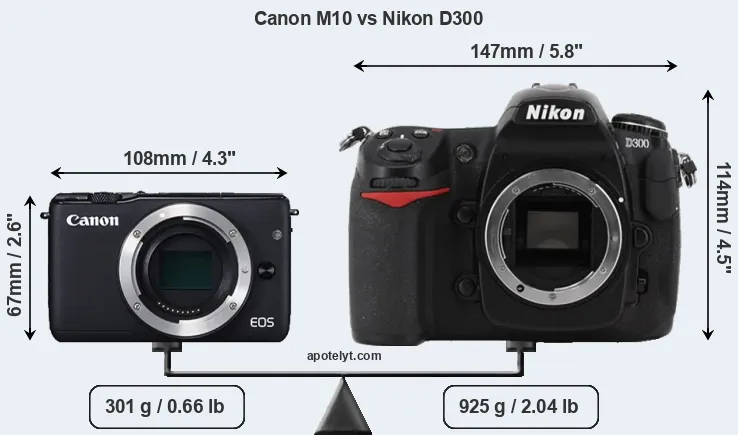 Size Canon M10 vs Nikon D300
