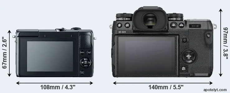 | 2. | Fujifilm X-H1 | 140 mm | 97 mm | 86 mm | 673 g | 310 | Y | Feb 2018 | US$ 1 899 | ebay.com | |