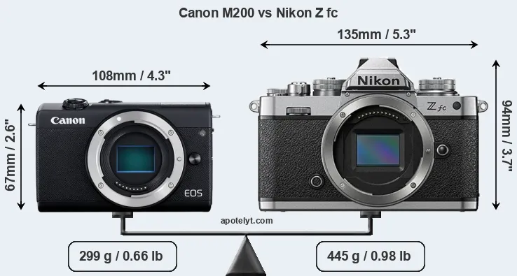 Size Canon M200 vs Nikon Z fc