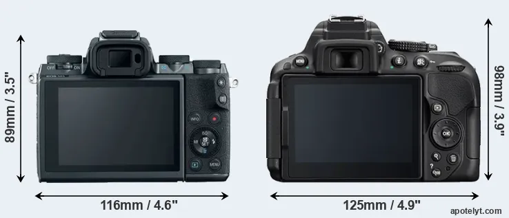 Going beyond this snapshot of core features and characteristics, what are the differences between the Canon EOS M5 and the Nikon D5300? Which one should you buy? Read on to find out how these two cameras compare with respect to their body size, their imaging sensors, their shooting features, their input-output connections, and their reception by expert reviewers.
