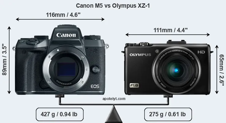 Size Canon M5 vs Olympus XZ-1