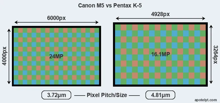 | Sensor Specs | Canon M5 | Pentax K-5 |