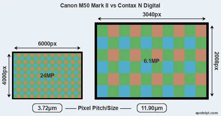 | Sensor Specs | Canon M50 Mark II | Contax N Digital |
