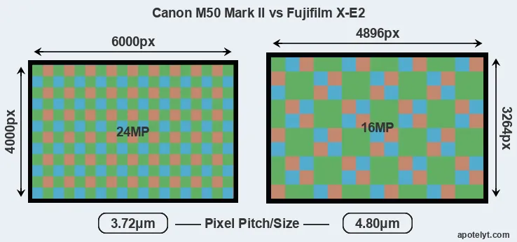| Sensor Specs | Canon M50 Mark II | Fujifilm X-E2 |