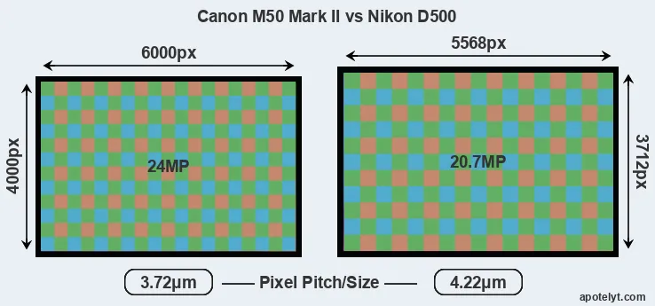 | Sensor Specs | Canon M50 Mark II | Nikon D500 |