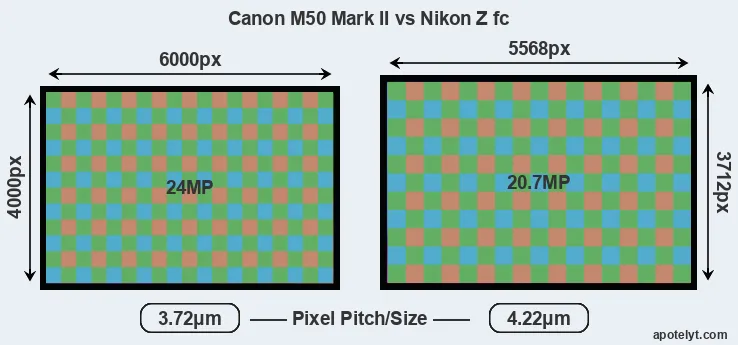 | Sensor Specs | Canon M50 Mark II | Nikon Z fc |