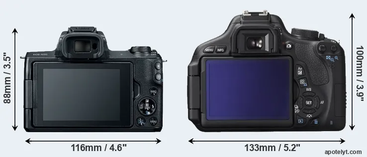 The Canon EOS M50 and the Canon EOS Rebel T3i (labelled Canon 600D in some countries) are two digital cameras that were officially introduced, respectively, in February 2018 and February 2011. The M50 is a mirrorless interchangeable lens camera, while the T3i is a DSLR. Both cameras are equipped with an APS-C sensor. The M50 has a resolution of 24 megapixels, whereas the T3i provides 17.9 MP.