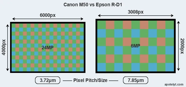 | Sensor Specs | Canon M50 | Epson R-D1 |