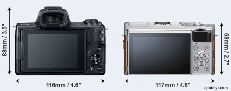Both cameras under consideration feature an APS-C sensor, but their sensors differ slightly in size. The sensor area in the X-A5 is 11 percent bigger. As a result of these sensor size differences, the cameras have format factors, respectively, of 1.6 (M50) and 1.5. Both cameras have a native aspect ratio (sensor width to sensor height) of 3:2.