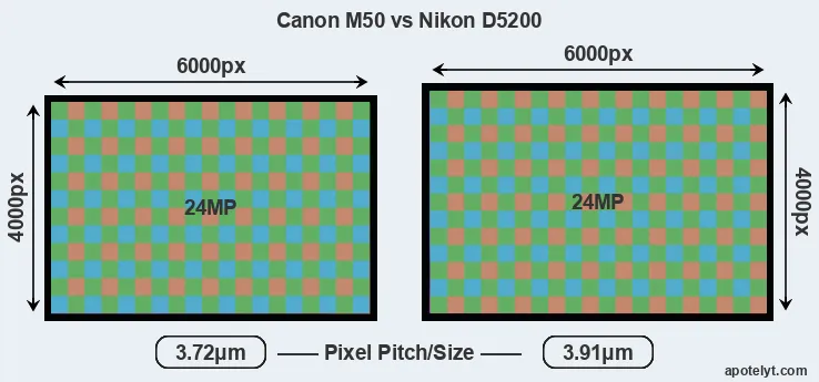 | Sensor Specs | Canon M50 | Nikon D5200 |