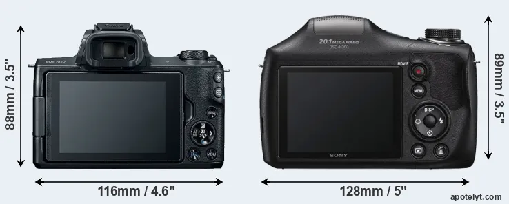 Going beyond this snapshot of core features and characteristics, what are the differences between the Canon EOS M50 and the Sony Cyber-shot DSC-H300? Which one should you buy? Read on to find out how these two cameras compare with respect to their body size, their imaging sensors, their shooting features, their input-output connections, and their reception by expert reviewers.