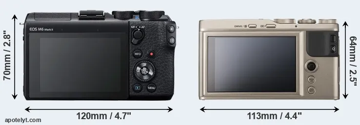 | 1. | Canon M6 Mark II | 120 mm | 70 mm | 49 mm | 408 g | 305 | n | Aug 2019 | US$ 849 | ebay.com | |