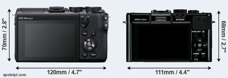 | Body Specs | Canon M6 Mark II | Leica D-LUX 6 |