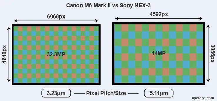 | Sensor Specs | Canon M6 Mark II | Sony NEX-3 |