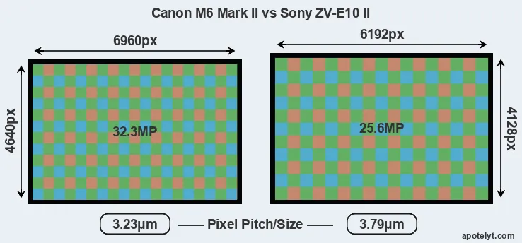 | Sensor Specs | Canon M6 Mark II | Sony ZV-E10 II |