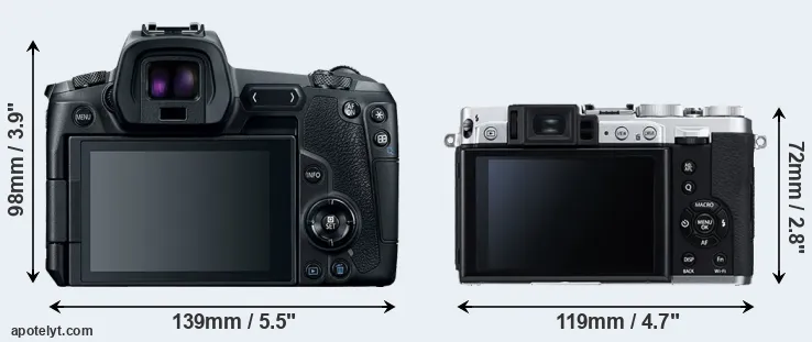 If the front view area (width x height) of the cameras is taken as an aggregate measure of their size, the Fujifilm X30 is considerably smaller (37 percent) than the Canon R. It is worth mentioning in this context that the Canon R is splash and dust resistant, while the X30 does not feature any corresponding weather-sealing.