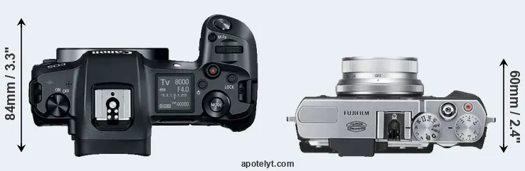 The above size and weight comparisons are to some extent incomplete and possibly misleading, as the X30 has a lens built in, whereas the Canon R is an interchangeable lens camera that requires a separate lens. Attaching the latter will add extra weight and bulk to the setup.