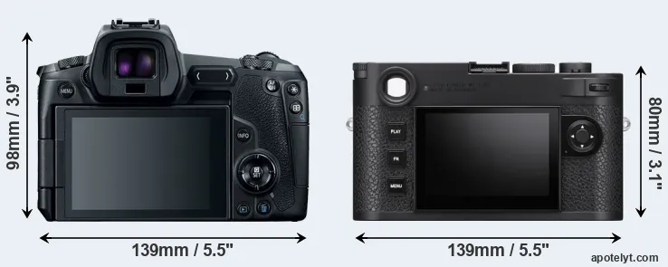 Going beyond this snapshot of core features and characteristics, what are the differences between the Canon EOS R and the Leica M11 (Typ 2416)? Which one should you buy? Read on to find out how these two cameras compare with respect to their body size, their imaging sensors, their shooting features, their input-output connections, and their reception by expert reviewers.