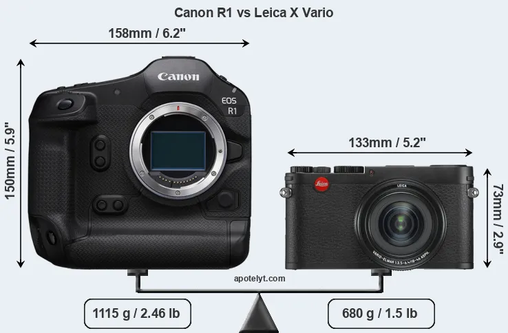 Going beyond this snapshot of core features and characteristics, what are the differences between the Canon EOS R1 and the Leica X Vario (Typ 107)? Which one should you buy? Read on to find out how these two cameras compare with respect to their body size, their imaging sensors, their shooting features, their input-output connections, and their reception by expert reviewers.