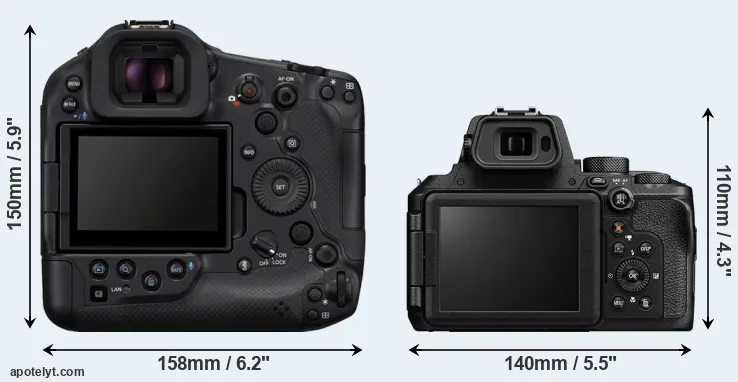 Going beyond this snapshot of core features and characteristics, what are the differences between the Canon EOS R1 and the Nikon Coolpix P950? Which one should you buy? Read on to find out how these two cameras compare with respect to their body size, their imaging sensors, their shooting features, their input-output connections, and their reception by expert reviewers.