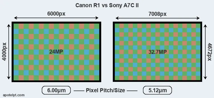 | Sensor Specs | Canon R1 | Sony A7C II |