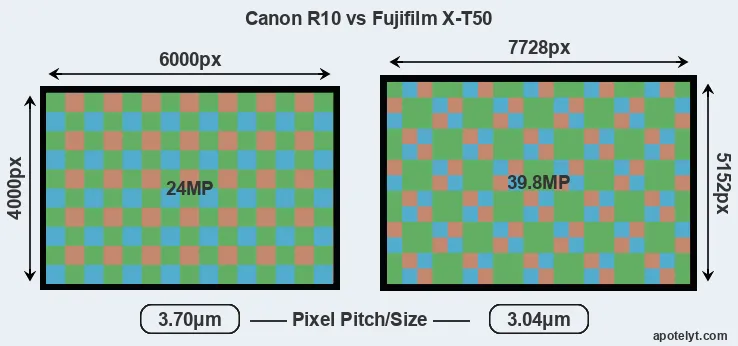 | Sensor Specs | Canon R10 | Fujifilm X-T50 |